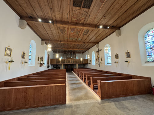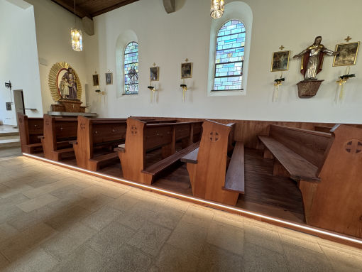 Wir haben die Kirchenbänke erneuert und die Bankpodeste gebaut.